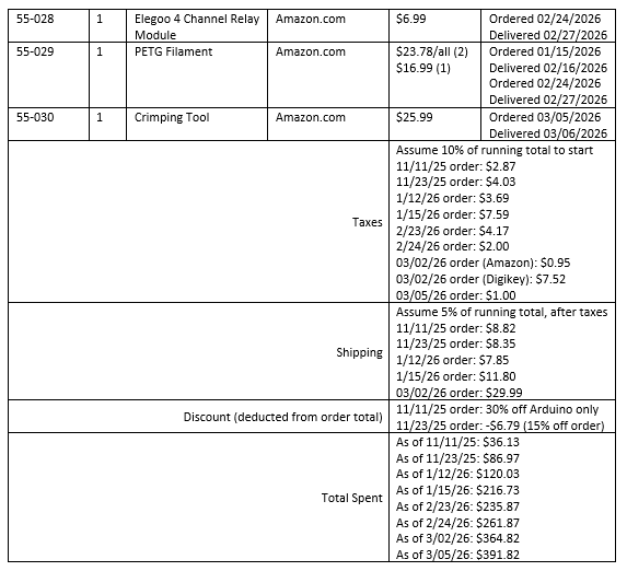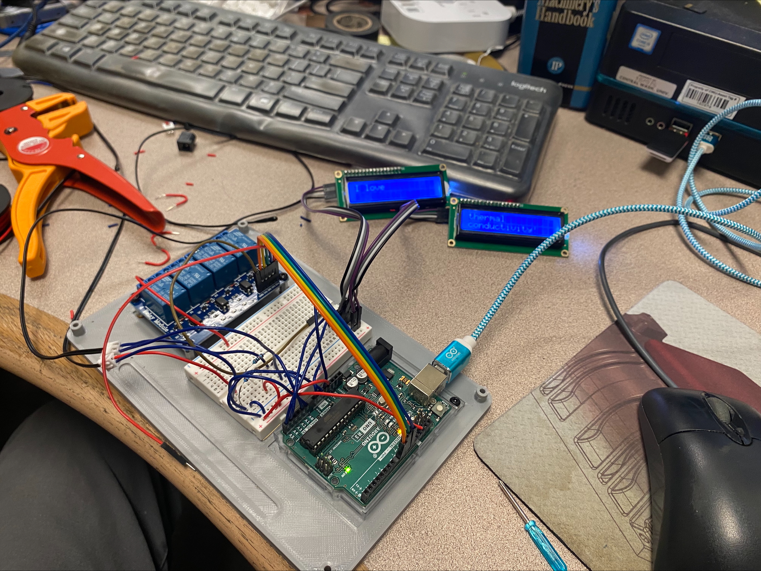 Time-lapse of a portion of the time spent coding the Arduino. Most of the time was spent researching how to code, since the Arduino uses a simplified version of C++ and I am only familiar with block-based programming. Towards the end you can see lights blinking on the relay; this is from code which pulsed power to the relay to test it’s function.