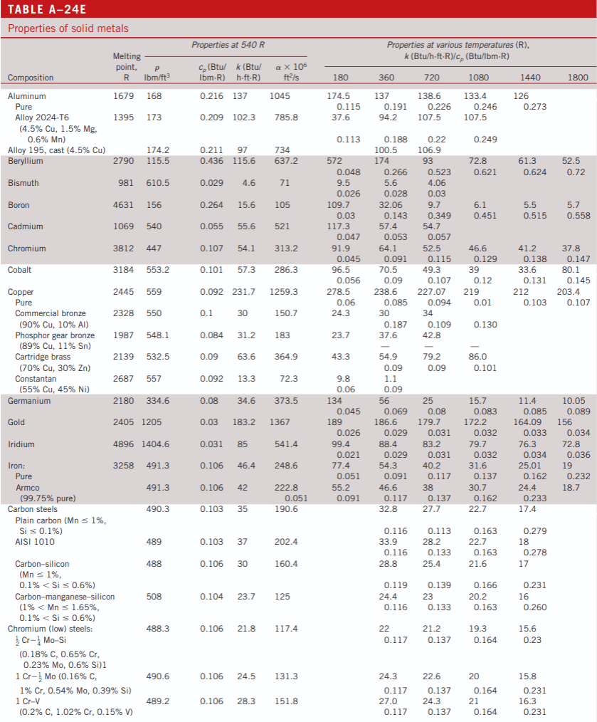 - A solid listed in Appendix A-24 or A-25 of the Cengel Thermal-Fluids book, at a known temperature